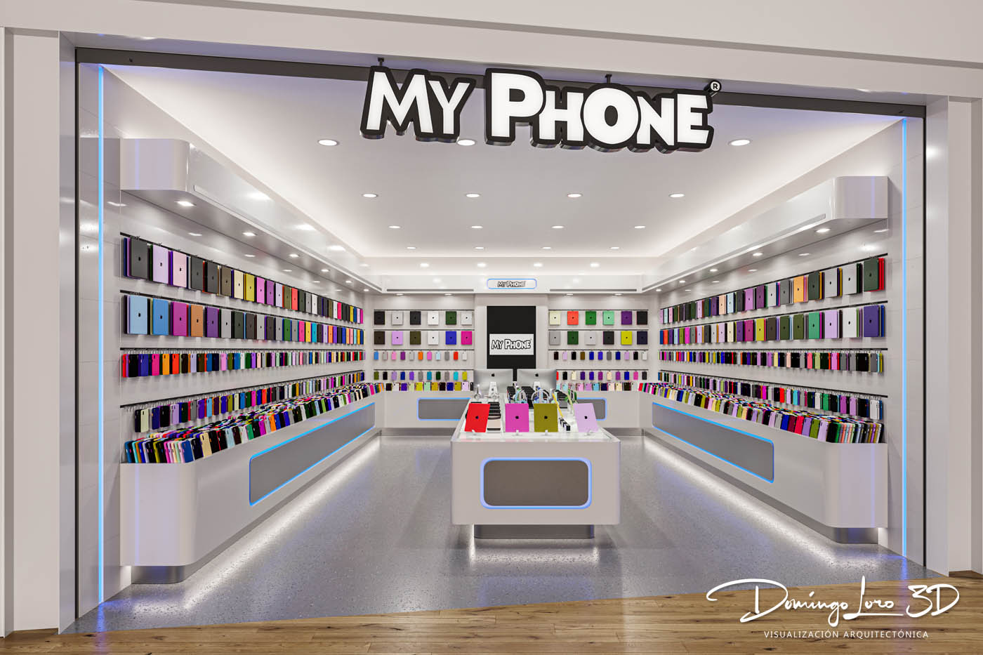 Renders 3D de una franquicia de accesorios para móviles desarrollados con el propósito de que la propiedad de centros comerciales pueda aproximar la idea de como serán los futuros espacios que ha alquilado a una nueva tienda, realizamos renders con infografía 3D para la representación de todo tipo de espacios interiores para proyectos de decoración e interiorismo y promociones inmobiliarias para visualizar interiores 3D realizados con infografía. La finalidad de los renders 3D que ilustran este artículo es la de visualizar todo el mobiliario, espacio y propuesta decorativa para dos tiendas de accesorios para móviles que nos ha contratado el responsable de la franquicia a petición de la propiedad del centro comercial.