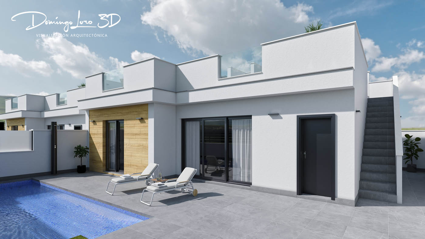 Renders 3D de un conjunto residencial de viviendas adosadas en Roldán, Murcia. Vistas exteriores para visualizar el conjunto y viviendas con parcela independiente y solarium realizadas con infografía 3D para la comercialización de esta promoción inmobiliaria. Realizamos renders con infografía 3D de gran realismo y alto impacto visual para la representación de promociones inmobiliarias para empresas de toda España, infografías 3D para la comercialización de todo tipo de proyectos inmobiliarios con la mejor relación: plazos de entrega, calidad y precio del mercado. ¡Hable con nosotros!