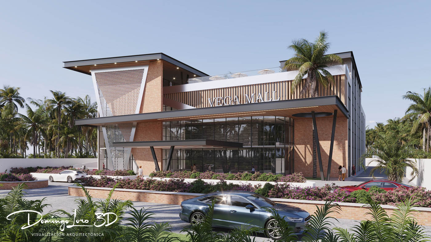 Renders 3D de un centro comercial realizados a través de infografía de arquitectura 3D que representan las fachadas, zona de ocio y restauración. Se trata de la recreación virtual del centro comercial Vega Mall en República Dominicana, se han realizado multitud de renders 3D realizados con infografía 3D para visualizar el resultado del proyecto antes de la ejecución de la obra y así comprobar los materiales y soluciones constructivas a utilizar para visualizar la estética exterior del centro comercial. Cualquier empresa puede mirar hacia el futuro junto a nosotros y comprobar lo que es posible lograr en el mundo de la arquitectura y la infografía 3D.
