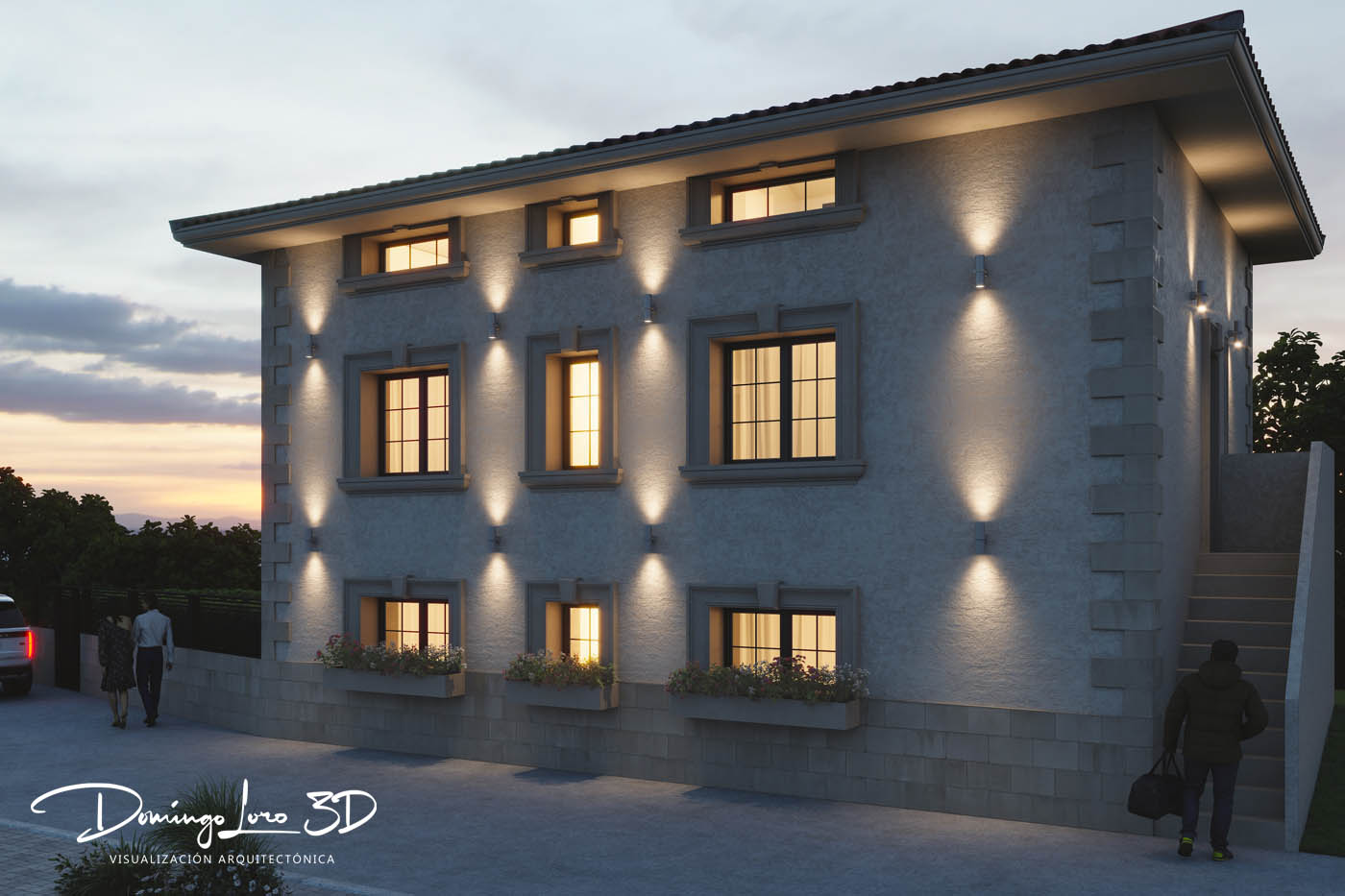 En este proyecto hemos desarrollado un conjunto de renders 3D arquitectónicos para un edificio residencial de tres viviendas ubicado en Castro Urdiales. El objetivo era ofrecer una visualización clara y atractiva que ayudara al cliente a presentar la promoción con imágenes realistas, tanto de la fachada exterior como de los espacios interiores. La infografía 3D permite definir el aspecto final del edificio antes de su construcción y facilita la comunicación entre promotor, arquitecto y futuro comprador. Para este trabajo generamos diferentes imágenes que muestran iluminación natural y artificial, texturas de fachada, carpinterías y distribución interior de cada tipología de vivienda.