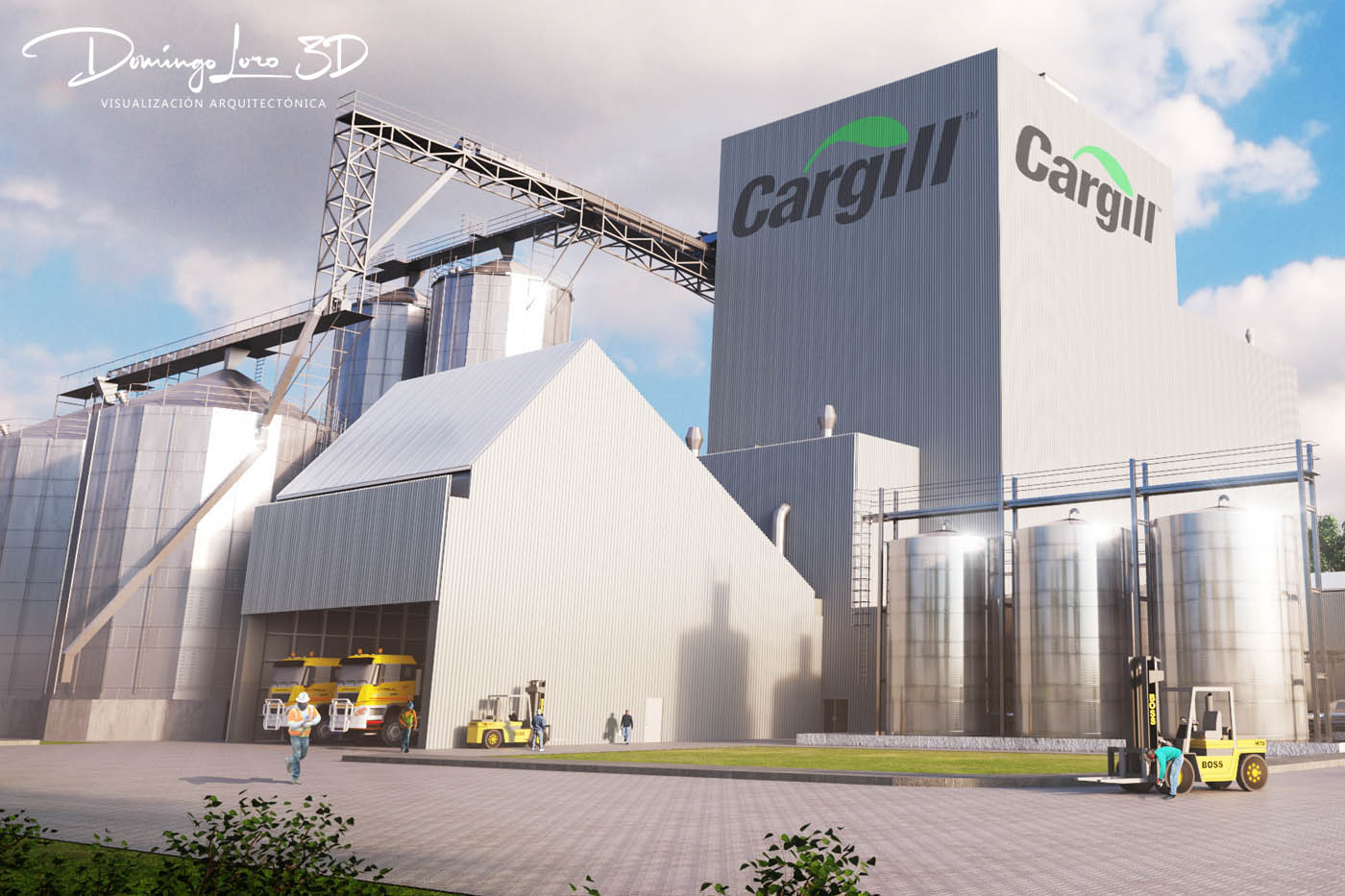Render 3D de las nuevas instalaciones industriales de Cargill ©, la corporación multinacional privada, con base en Minnesota, ha confiado en nuestra empresa para el desarrollo de la visualización 3D de sus nuevas instalaciones, la mayor corporación estadounidense que no cotiza en bolsa, líder en su sector, va a construir unas instalaciones para el suministro, la importación y la exportación de granos de cereales. Hemos desarrollado varías infografías 3D para visualizar el conjunto de sus nuevas instalaciones. Agradecemos la confianza depositada en nuestra empresa para el desarrollo de este magnífico proyecto, llevamos 20 años representando todo tipo de instalaciones, fábricas y complejos industriales en toda España.