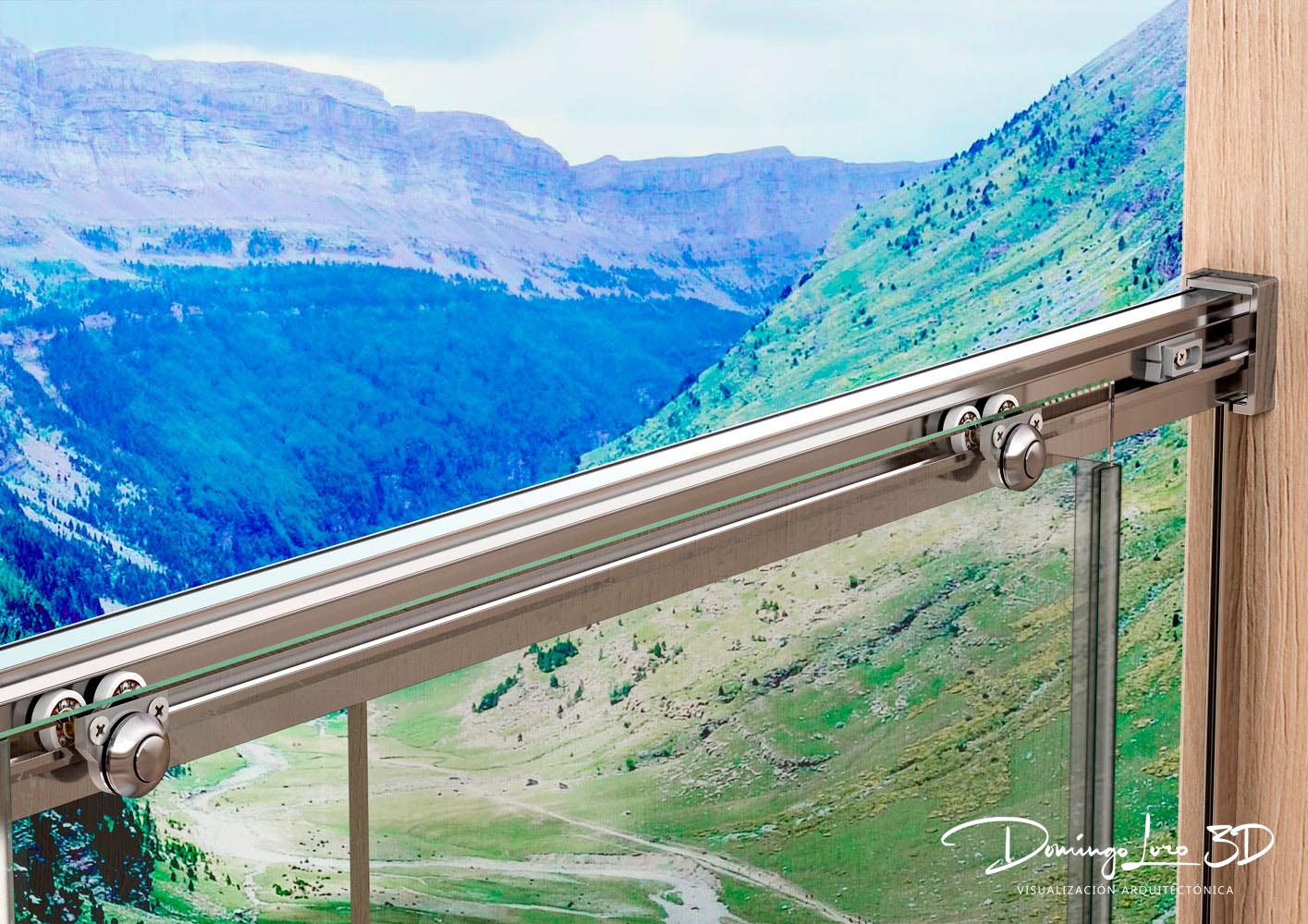 Detalles técnicos y sistemas de rodamiento de las mamparas de baño.