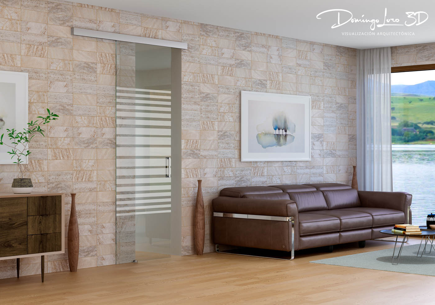 Renders 3D de gran realismo de todo tipo de productos para ilustrar catálogos impresos para fabricantes de toda España. El caso de las imágenes que ilustran este artículo, puertas correderas.