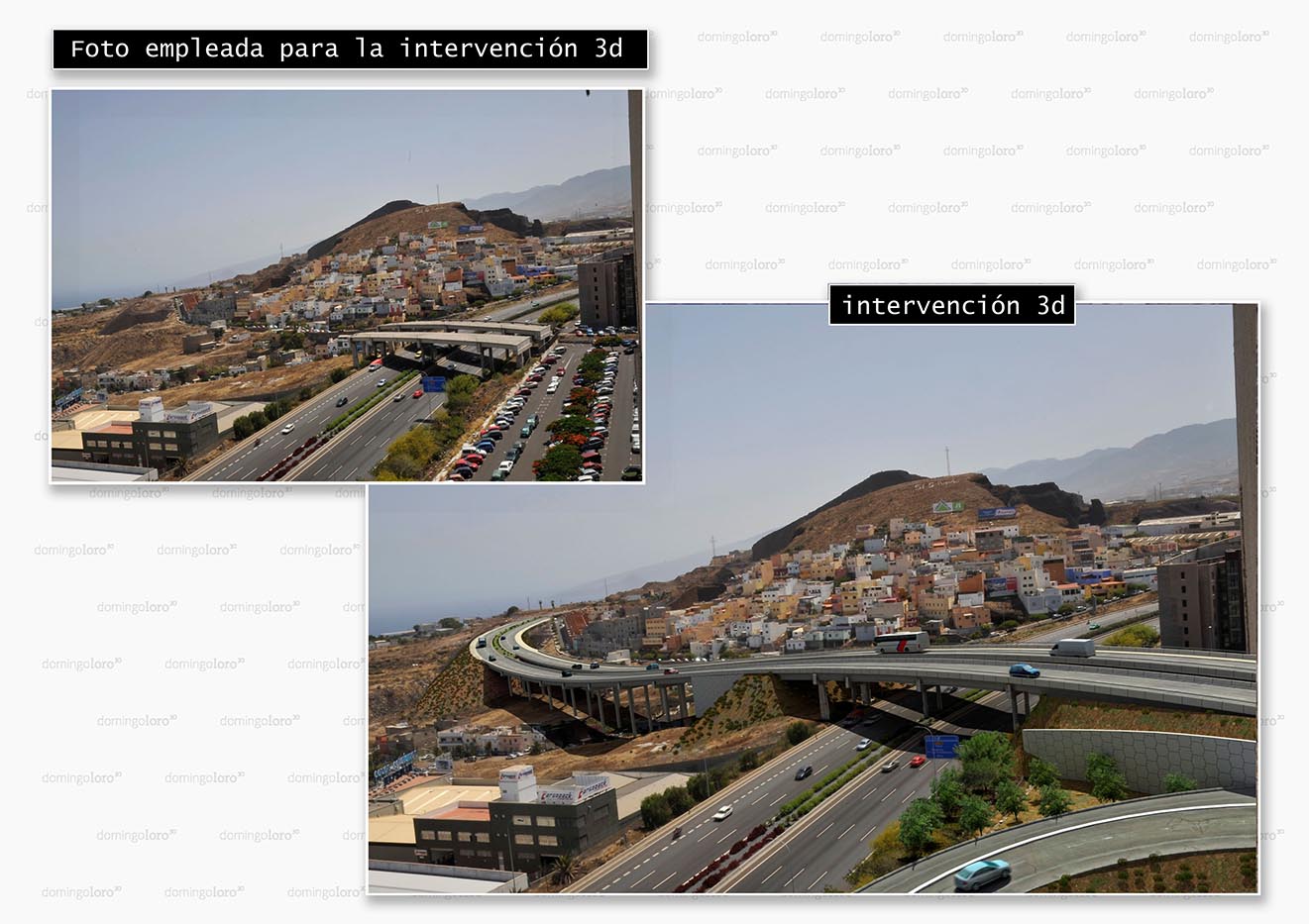 El render 3D de infraestructuras y carreteras que ilustra este artículo se realizó para visualizar la nueva conexión hacía una autovía que tendría una rotonda urbana, formando un nuevo vial que modificaría sensiblemente el estado actual del entorno al realizar la obra. El artículo muestra el estado actual de la rotonda y el resultado una vez acometida la obra.