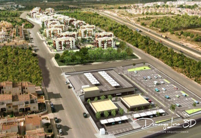 La integración 3D resuelve en muchos casos las dudas de arquitectos y promotoras inmobiliarias al poder realizar renders de arquitectura 3D para visualizar el resultado final de una obra sobre su entorno real antes del inicio de la obra y así comercializar el proyecto con todas las garantías para los clientes al poder ver como será su futura vivienda en una foto.
