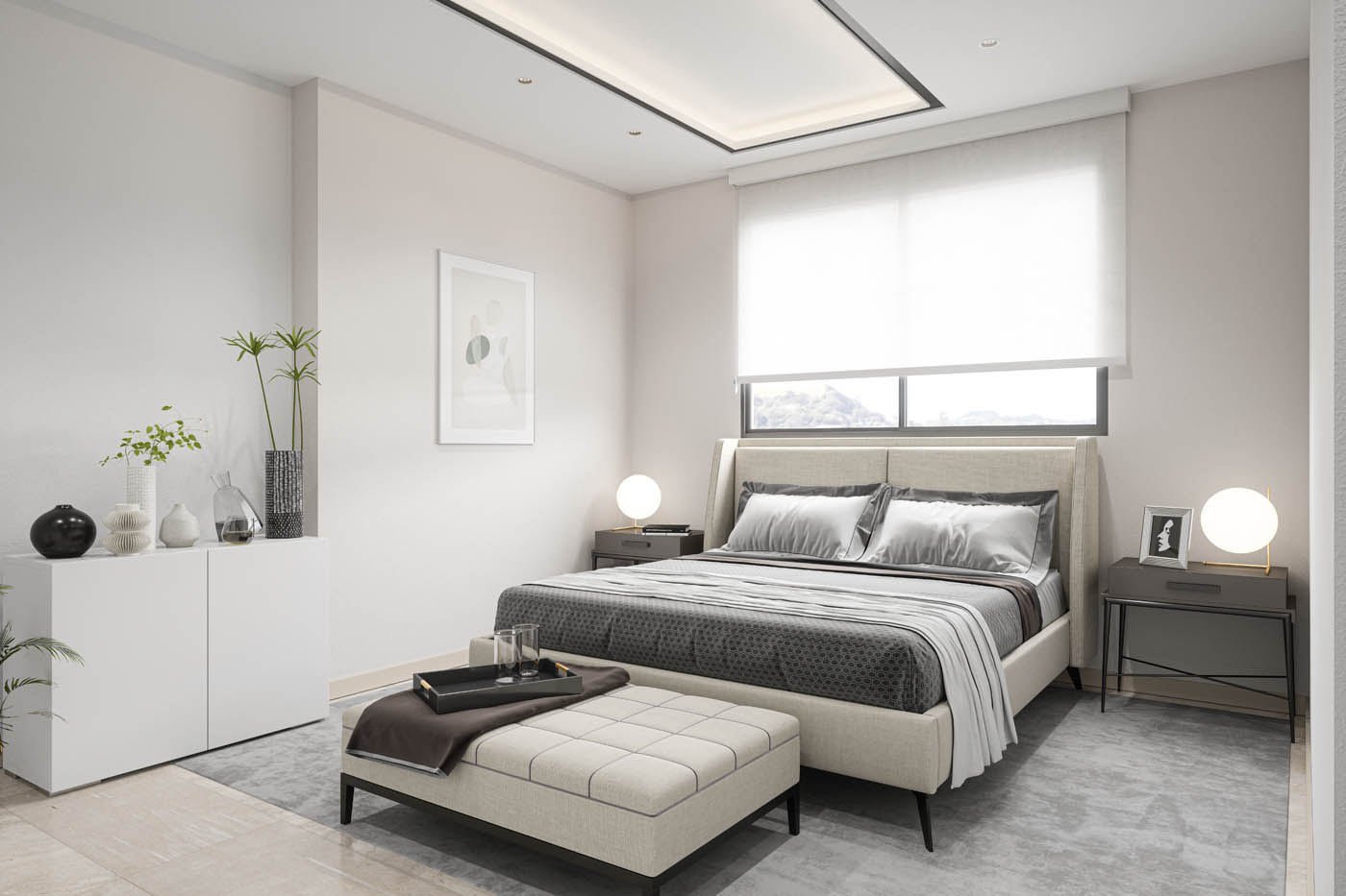 Renders 3D de los espacios interiores de una vivienda en República Dominicana, desarrollados con infografía 3D para la comercialización de una promoción inmobiliaria. Los renders 3D de interiores permiten visualizar todo tipo de espacios de manera realista a través de la creación de imágenes digitales creadas por ordenador con infografía 3D controlando aspectos como puntos de vista, materiales, texturas e iluminación. Una herramienta para decoradores, interioristas y arquitectos para comunicar sus proyectos. Las habitaciones más representadas para venta inmobiliaria son las que ilustran este artículo: salón comedor, cocina, dormitorio y cuarto de baño ya que representan los espacios principales.