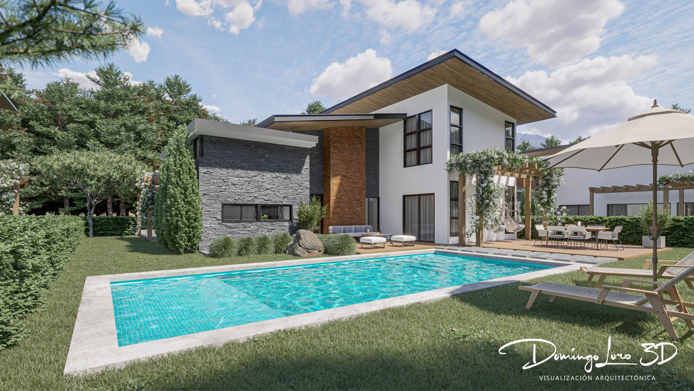 Renders 3D de varias viviendas unifamiliares en Jarabacoa, uno de los pueblos con menor contaminación y mejor calidad del aire en todo el territorio nacional, además de ser uno de los lugares más seguros y con menor índice de criminalidad en la República Dominicana, viviendas con una arquitectura moderna diseñadas por un prestigioso estudio de arquitectura internacional que ha sido el encargado del desarrollo de este proyecto donde la exclusividad y el lujo van de la mano. Con más de 20 años de experiencia somos profesionales altamente cualificados para crear la mejor imagen para su proyecto con una relación calidad y precio de las mejores del mercado.