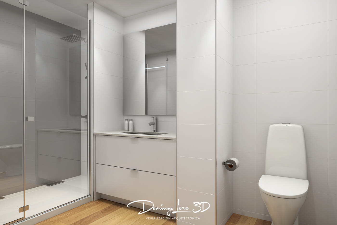 La realización del render de un interior de una vivienda se ha convertido en una herramienta fundamental para la comercialización de proyectos inmobiliarios. Como este ejemplo del render interior de un cuarto de baño.