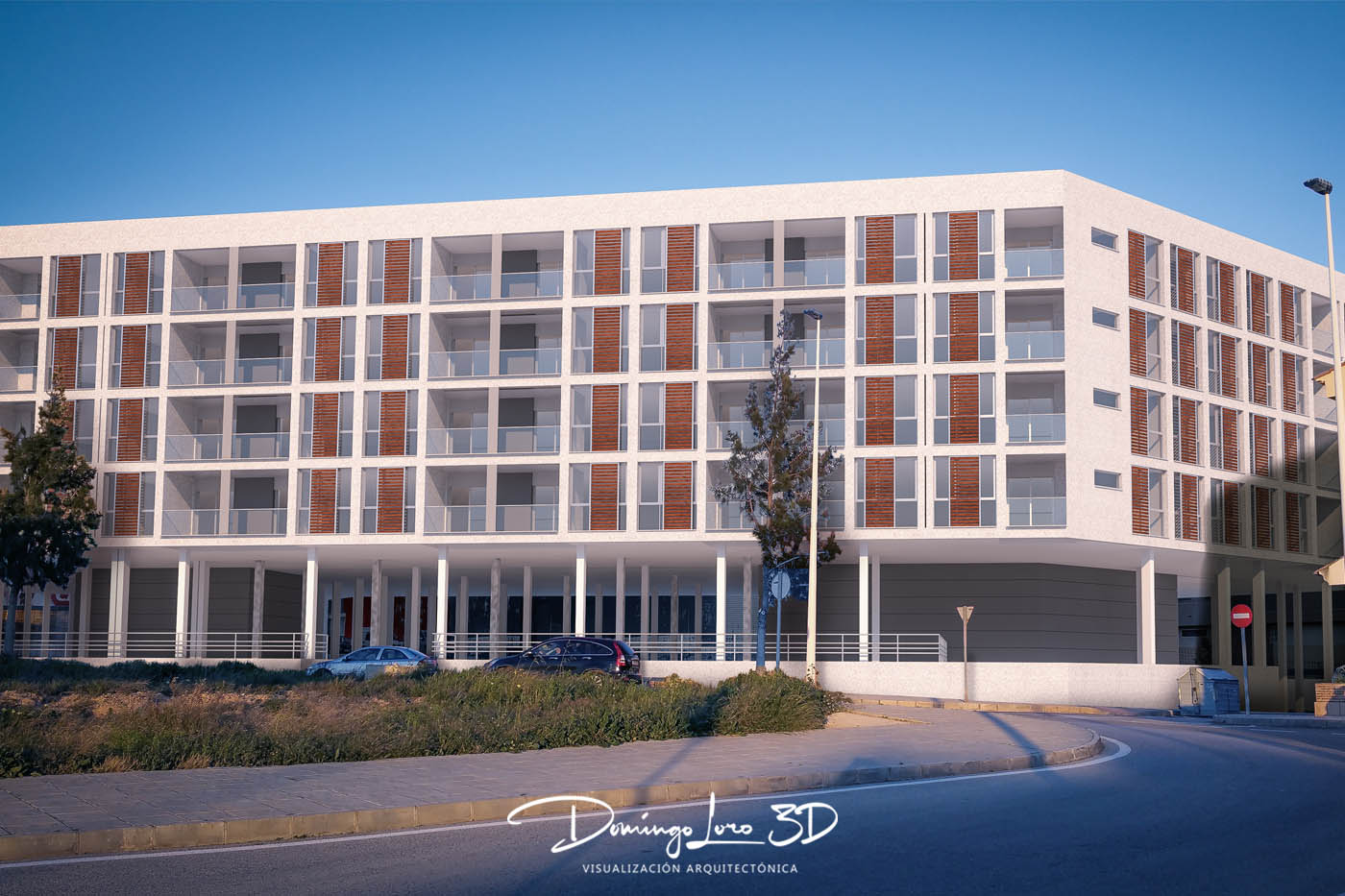 Arquitectos, agencias inmobiliarias y empresas promotoras o constructoras conocen bien la eficacia comercial de una infografía 3D y recurren a empresas como la nuestra para la realización de un render de arquitectura como este render de un edificio para presentar sus proyectos a los clientes y así facilitar enormemente la comprensión del mismo y resolver las dudas y cuestiones estéticas que se plantean a través de una imagen con gran realismo y alto impacto visual.