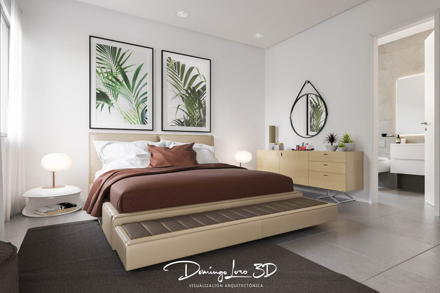 Infografía 3D en Soria, somos profesionales con veinte años de experiencia en el sector de la infografía 3D desarrollando proyectos de visualización arquitectónica realizados con renders 3D para la comercialización de todo tipo de proyectos de interiorismo, arquitectura e inmobiliarios en Soria y resto de España. Hemos desarrollado proyectos con infografía 3D para la representación, con gran realismo e impacto visual, de todo tipo de espacios como el de este dormitorio de una vivienda en un edificio residencial en el centro de la ciudad de Soria realizado para la comercialización de una promoción inmobiliaria. La ilustración de promociones inmobiliarias mediante infografía 3D es una herramienta cada vez más demandada por empresas promotoras de toda España.