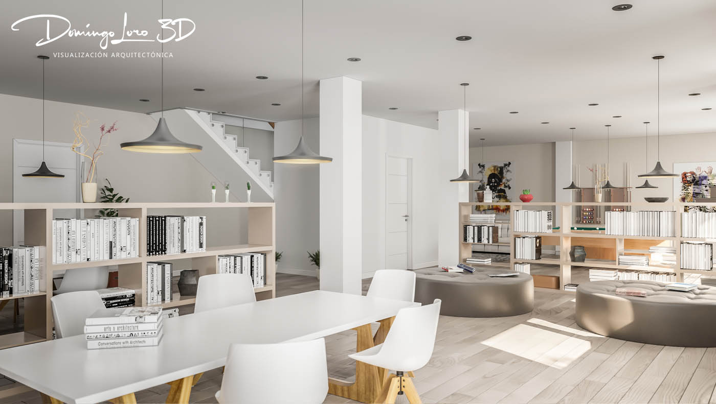 Las infografías 3D de espacios interiores realizados mediante renders 3D son una herramienta clave para su visualización y comercialización, cada vez más demandadas por parte de interioristas, arquitectos, empresas promotoras e inmobiliarias de toda España, ya que se consiguen ambientes muy realistas, en espectaculares imágenes digitales en alta resolución, sin la necesidad de tener que construir nada o pensar en el ambiente donde mostrarlo, lo que permite una ilustración del espacio con un alto impacto visual. Últimamente las infografías 3D de interiores han supuesto una herramienta fundamental en promociones inmobiliarias. Hace no mucho tiempo las empresas promotoras realizaban pisos piloto con un elevado coste económico y de tiempo debido a la construcción de una vivienda física para mostrar los espacios y acabados de la promoción inmobiliaria. Hoy en día es posible crear infografías 3D de espacios interiores en alta resolución para la comercialización de promociones inmobiliarias de todo tipo, muy reales como la biblioteca que ilustra este artículo.