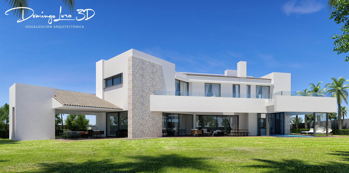Una infografía 3D para la representación de una villa de lujo en Murcia como la que ilustra este artículo, o de cualquier otro proyecto arquitectónico, inmobiliario o urbanístico se hace indispensable para su visualización, comprensión y comercialización. En la actualidad hacemos renders de arquitectura 3D de todo tipo para visualizar cualquier proyecto arquitectónico o promoción inmobiliaria. Estamos observando que cada vez más profesionales y empresas de toda España confían en nosotros para el desarrollo de todo tipo de renders de arquitectura 3D para ilustrar la publicidad orientada a la venta de viviendas.