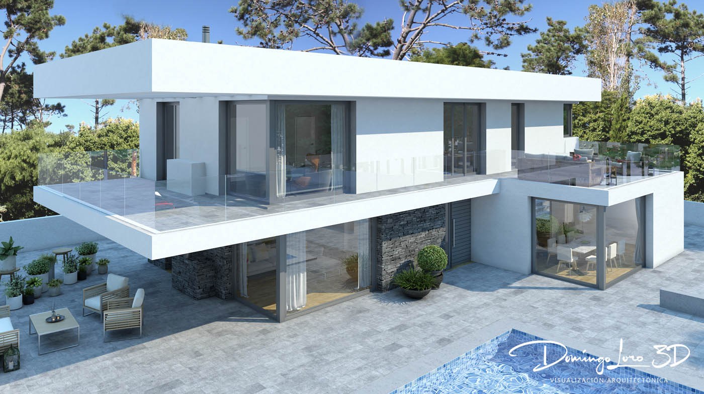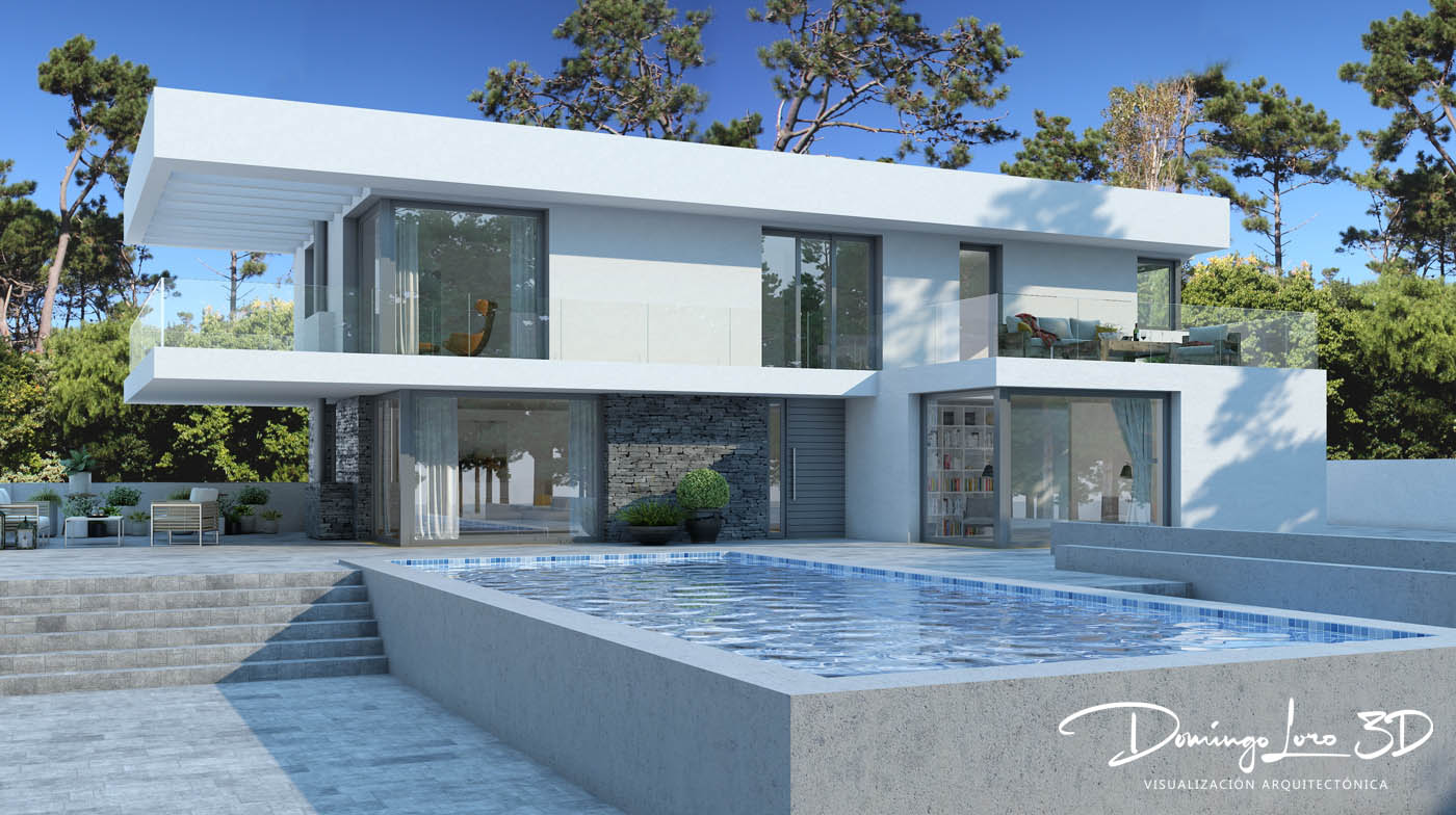 Renders 3D exteriores e interiores de una vivienda unifamiliar con parcela independiente en San Martín de Valdeiglesias, Madrid, en la zona conocida como "Costa de Madrid", junto al embalse de San Juan, realizados para la comercialización de una promoción inmobiliaria. Un chalet de lujo con una arquitectura vanguardista ubicado en una zona privilegiada de enorme belleza natural en esta bonita localidad de la Comunidad de Madrid. Renders exteriores e interiores 3D con gran calidad y realismo para la visualización de esta promoción inmobiliaria. Nuestra metodología de trabajo, contrastada durante 20 años de experiencia, nos permite trabajar desde la distancia, sea donde sea, para empresas de toda España con todas las garantías. ¡Somos expertos profesionales altamente cualificados para ofrecerle un servicio de calidad para crear la mejor imagen para la comercialización de su proyecto, llame ahora e infórmese!
