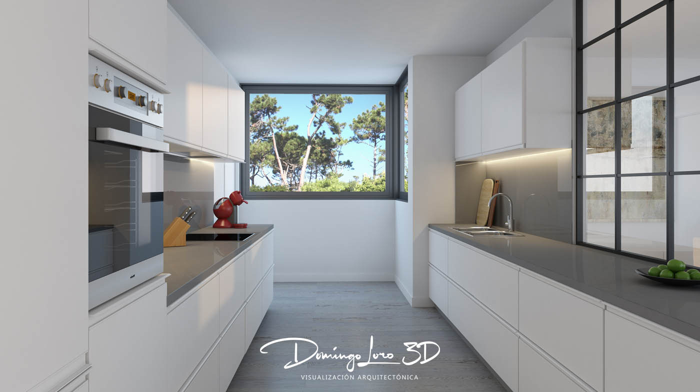En muchas ocasiones cuando una empresa, de cualquier parte de España, contacta con nosotros para la realización de un proyecto con infografía 3D para la comercialización de una promoción inmobiliaria nos comenta que les gustaría hacer unas vistas del interior, nosotros siempre aconsejamos realizar las estancias principales del inmueble como son: salón, comedor, cocina, dormitorio y baño ya que con la representación de estos espacios se visualiza, en su práctica totalidad, la vivienda a comercializar consiguiendo unas imágenes de alto impacto visual con gran calidad, detalle y realismo. Con renders de interiores 3D en alta resolución se aprecian los materiales, mobiliario, iluminación y todo tipo de detalles en la escena para favorecer la comprensión de los espacios por parte de los clientes interesados en la promoción inmobiliaria.