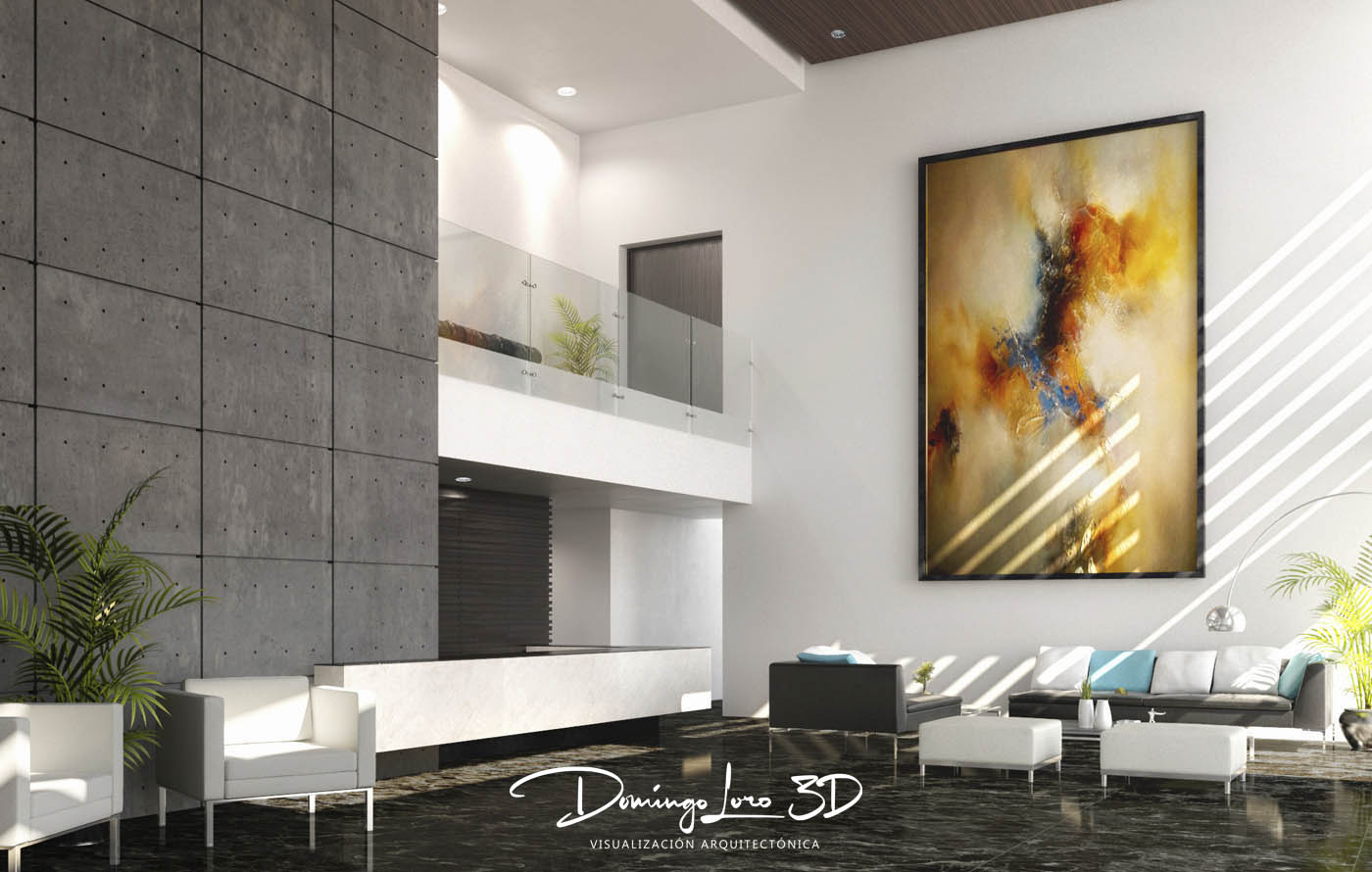 Render 3D del lobby de un edificio en Madrid, somos un estudio de infografía 3D especializado en el desarrollo de renders de arquitectura 3D e interiorismo en Madrid con 20 años de experiencia y miles de proyectos realizados de visualización arquitectónica. Infinidad de renders de arquitectura e interiorismo 3D realizados para empesas de toda España: estudios de arquitectura, interioristas, inmobiliarias y empresas promotoras. El render 3D que ilustra este artículo representa el lobby de un edificio residencial promovido por una importante empresa promotora que ha confiado en nosotros para la representación de todas las imágenes para la comercialización de este magnífico edificio residencial. Llevamos 20 años al servicio de la imagen digital para crear el mejor render 3D para la comercialización de su proyecto.