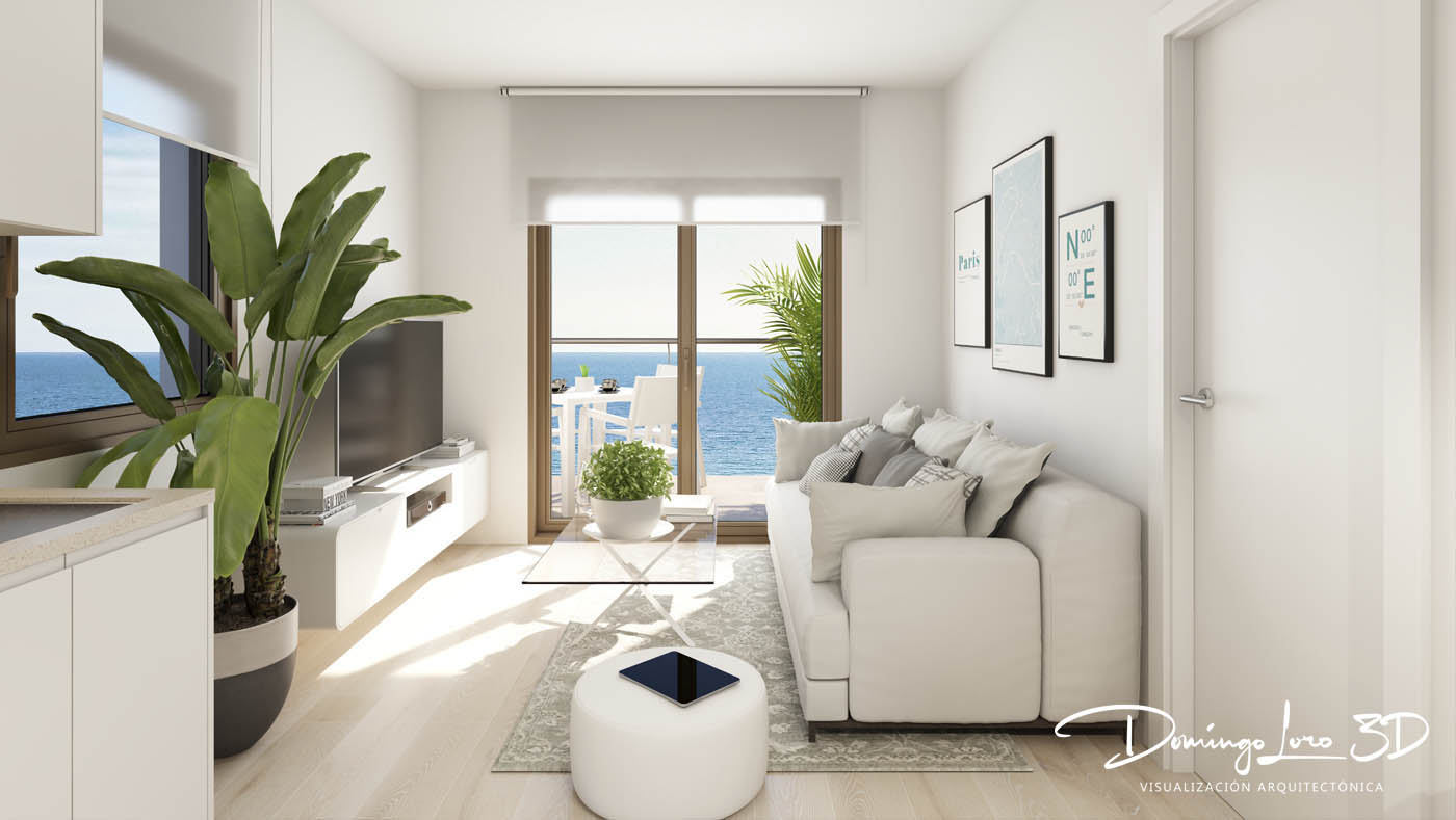 Renders 3D de un pequeño conjunto residencial de cuatro viviendas adosadas con plantas bajas con jardín y plantas superiores con solarium en Mar de plata, Bahía de Mazarrón, Murcia, llevamos más de veinte años de actividad profesional realizando proyectos de visualización arquitectónica con renders 3D de arquitectura e interiorismo para estudios de arquitectura, interiorismo, inmobiliarias, empresas promotoras y clientes particulares de todo tipo. Estos renders 3D en Bahía de Mazarrón representan una pequeña urbanización de viviendas adosadas frente al mar con integraciones a vista de dron e interiores de una de las viviendas a modo de piso piloto virtual. Si está interesado en la comercialización de una promoción inmobiliaria llámenos, infórmese y compruebe nuestros resultados, tenemos la mejor relación calidad y precio del mercado.