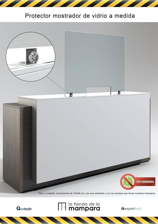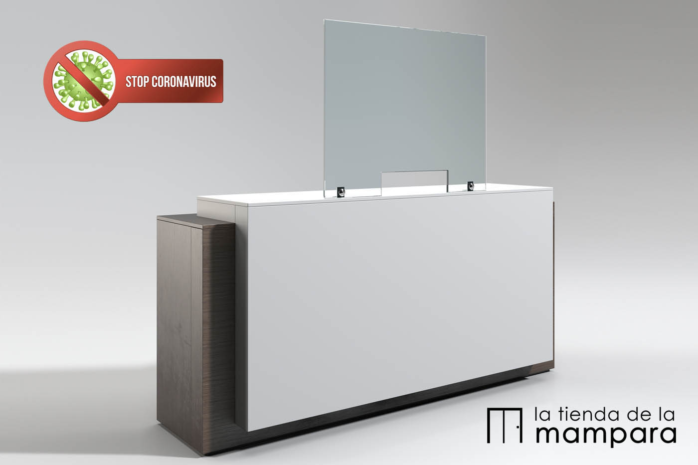 Renders 3D de mamparas de vidrio contra la COVID-19 para mostradores