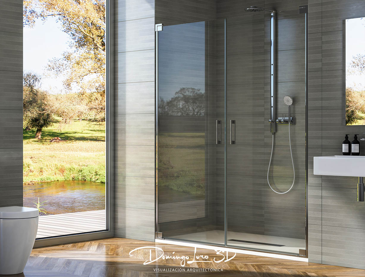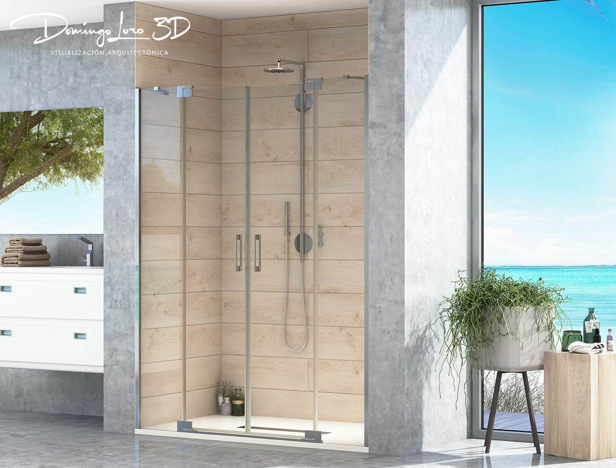Algunos ejemplos de mamparas de ducha realizadas con infografía 3D.