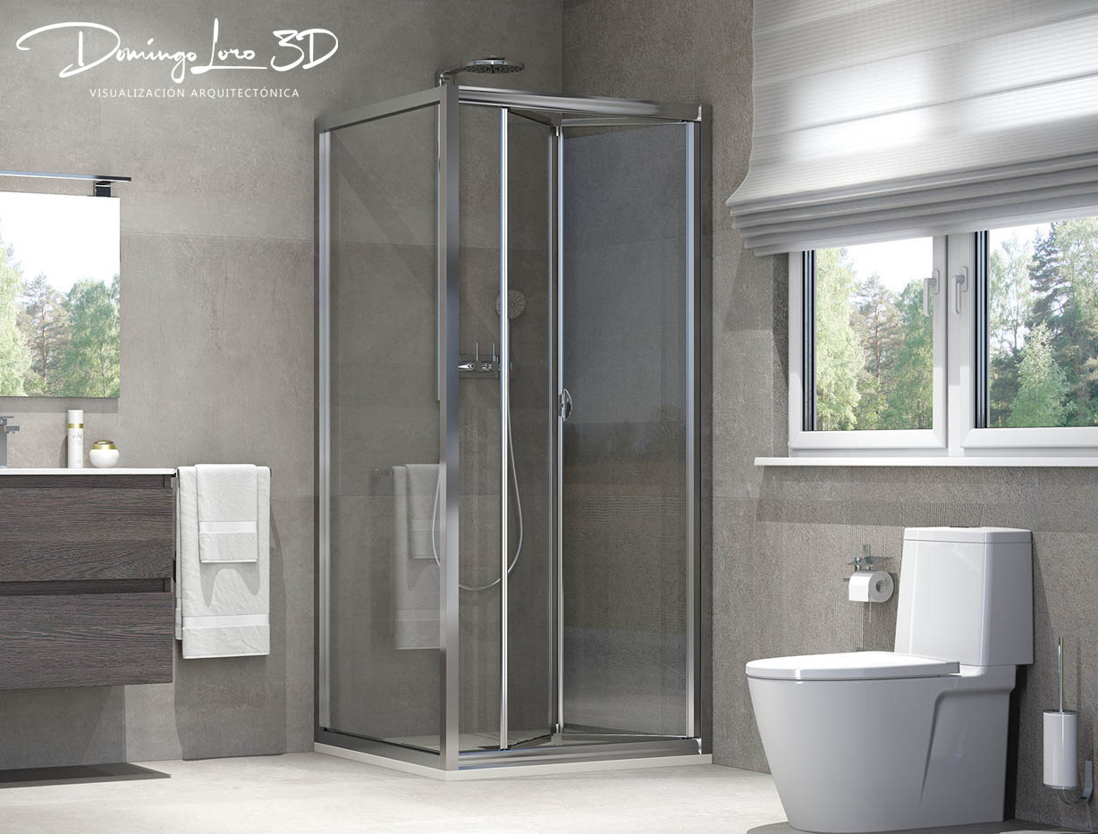 Hasta hace no mucho tiempo la elaboración de este tipo de imágenes suponía un auténtico quebradero de cabeza para los fabricantes ya que se tenían que fabricar todos los modelos de mamparas de ducha, desplazarlas hasta el estudio fotográfico preparado para tal fin con el montaje y desmontaje de todo, realizar el atrezzo de todas las composiciones y escenas, fotografiar todo y recogerlo. Lógicamente este sistema tenía un altísimo coste de tiempo y económico implícito que hacía muy estresante el desarrollo. ¡Olvídese de todo esto, ahora es posible realizar espectaculares presentaciones de sus productos sin ni siquiera tener que fabricar nada. ¡Todo hecho mediante imágenes realistas realizadas con ordenador mediante renders 3D!