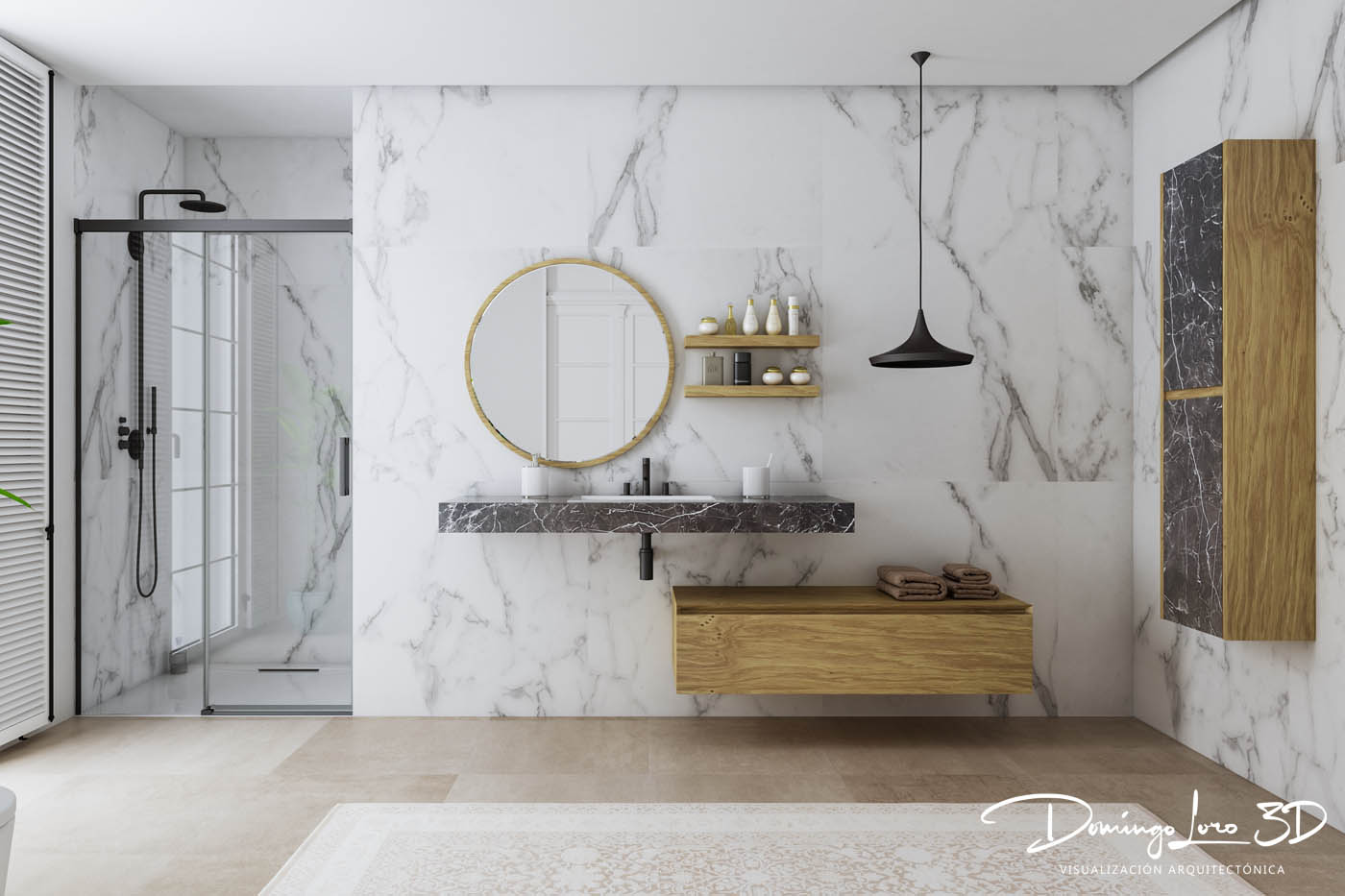 Renderizado de muebles de baño en 3D, imágenes digitales en alta resolución de gran detalle y realismo realizadas con infografía 3D para la ilustración de catálogos impresos para colecciones de fabricantes de muebles de baño. Renders de muebles de baño en 3D para presentar el mueble en un ambiente decorativo con detalles de todo tipo para su visualización y comercialización sin la necesidad de tener que fabricar nada. Una herramienta de gran valor comercial para fabricantes de muebles. Trabajamos para fabricantes de todo tipo de muebles en toda España representando con gran calidad, detalle y realismo, mediante renderizado 3D, multitud de tipos de muebles con la mejor relación calidad y precio del mercado. ¡Contacte con nosotros, llame ahora e infórmese!