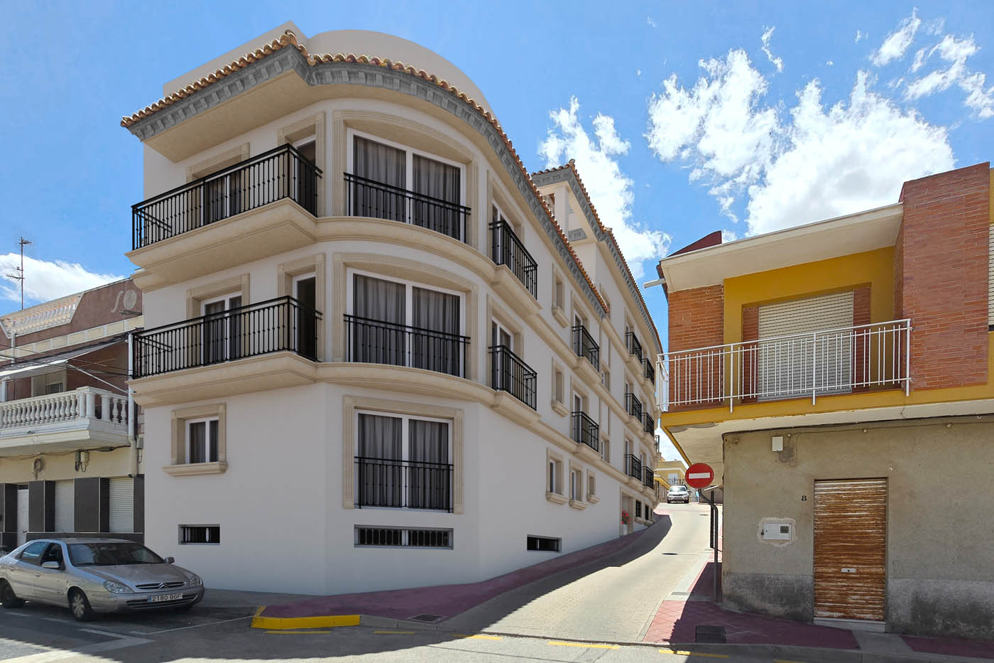 Infografía 3D de la fachada e interiores de una de las tipologías de vivienda en un edificio residencial en Algorfa, Alicante, distintas recreaciones virtuales con renders 3D para la comercialización de una promoción inmobiliaria. Estos renders 3D exterior e interiores son representados habitualmente para la comercialización de promociones inmobiliarias y sirven para comprender con gran detalle las características del inmueble a comercializar. Renders 3D con gran calidad y la mejor relación calidad y precio del mercado. Nuestra metodología de trabajo nos permite trabajar desde la distancia para empresas de toda España con todas las garantías.