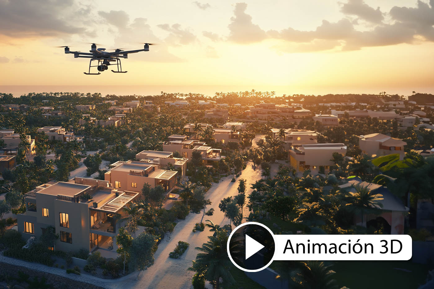 Hoy en día la tecnología actual permite la grabación aérea en vídeo de una parcela, solar o suelo urbanístico con un dron y sobre estas imágenes implantar el futuro proyecto urbanístico con infografía y animación 3D consiguiendo un resultado espectacular mostrando la promoción inmobiliaria como si ya estuviese ejecutada con todo lujo de detalles. Esto supone una herramienta de marketing inmobiliario de gran utilidad e impacto visual para conseguir captar la atención de nuestros futuros clientes. Conseguir este tipo de presentaciones con gran calidad, detalle y realismo está al alcance de pocas empresas en el sector.