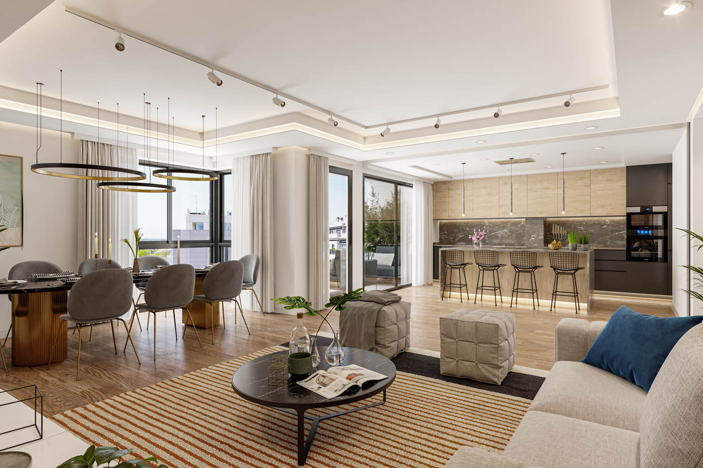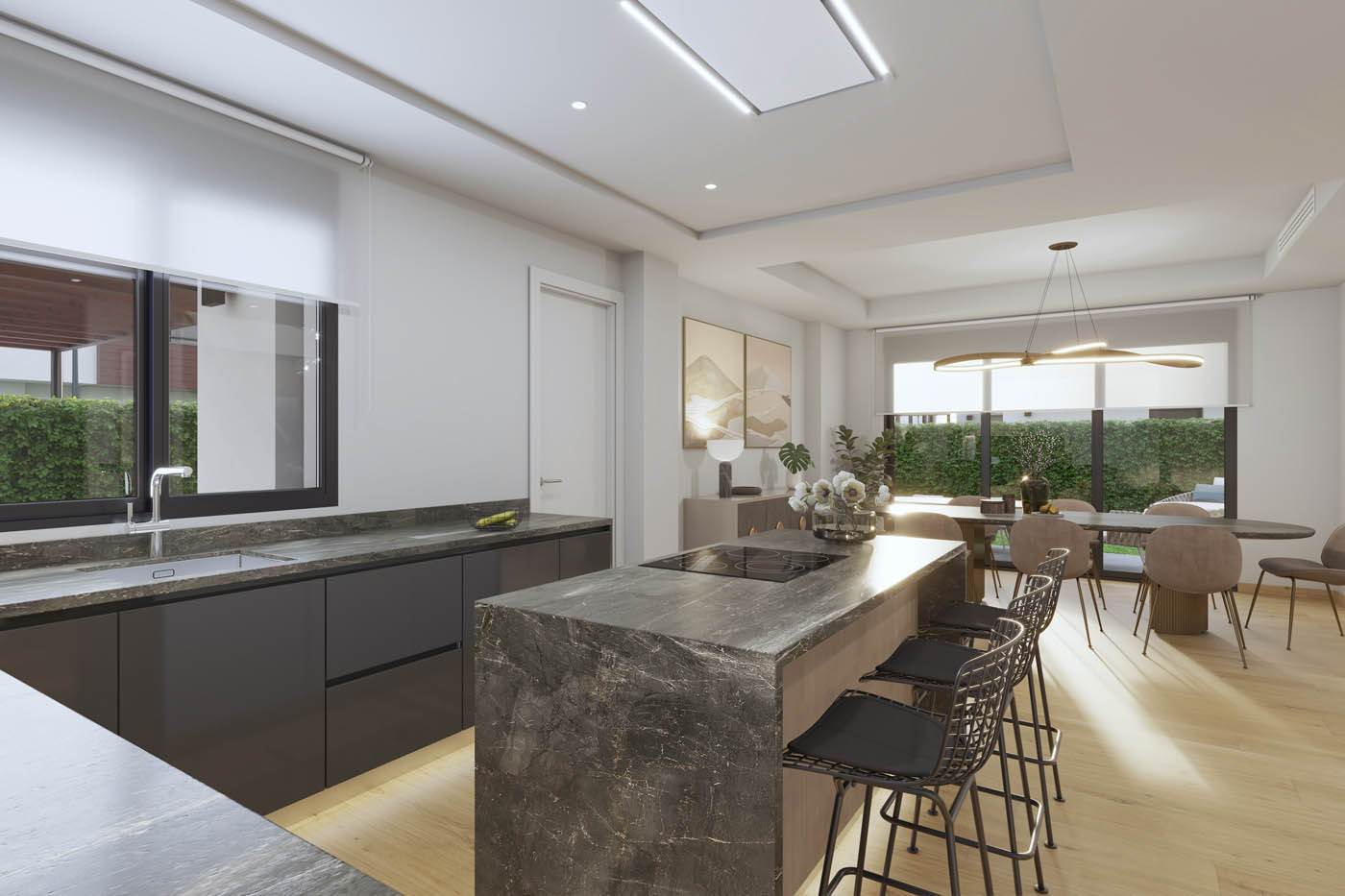 Interiores 3D de una vivienda en Dos Hermanas, Sevilla. Las infografías 3D no solo se limitan a mostrar el exterior de las viviendas. También permiten un recorrido virtual por el interior, donde se puede apreciar la distribución de los espacios, la decoración propuesta y los materiales elegidos. Cocinas modernas y funcionales, salones acogedores, dormitorios luminosos y baños elegantes se muestran con gran realismo, permitiendo a los futuros propietarios imaginarse viviendo allí. Trabajamos para empresas de toda España. ¡Hable con nosotros y compruebe nuestros resultados!