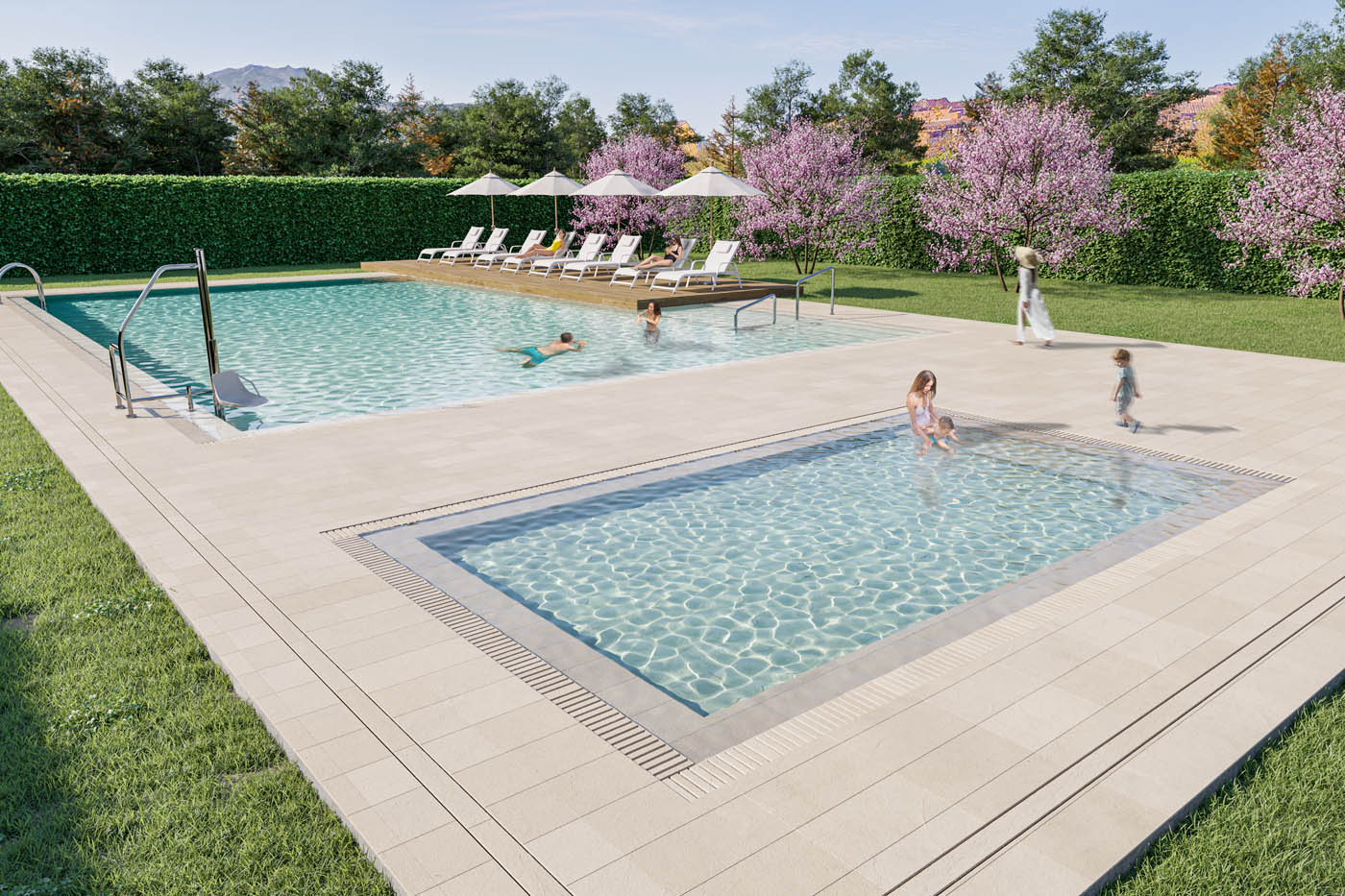 Render 3D de la remodelación de la piscina municipal en Collsuspina, un municipio de Cataluña situado al este de la comarca del Moyanés y limítrofe con Osona en Barcelona, desarrollado con infografía 3D para visualizar el resultado final de la obra antes de su ejecución. Esta actuación prevé la adaptación del espacio reduciendo un poco la superficie de agua y actualizando la estética de las instalaciones. Realizamos renders 3D con gran calidad y mejor precio del mercado. Nuestra metodología de trabajo, contrastada durante casi 25 años de experiencia, nos permite trabajar desde la distancia para empresas de toda España con todas las garantías. ¡Llame ahora, infórmese y compruebe nuestros resultados! Le ayudaremos a conseguir la mejor imagen para su proyecto.