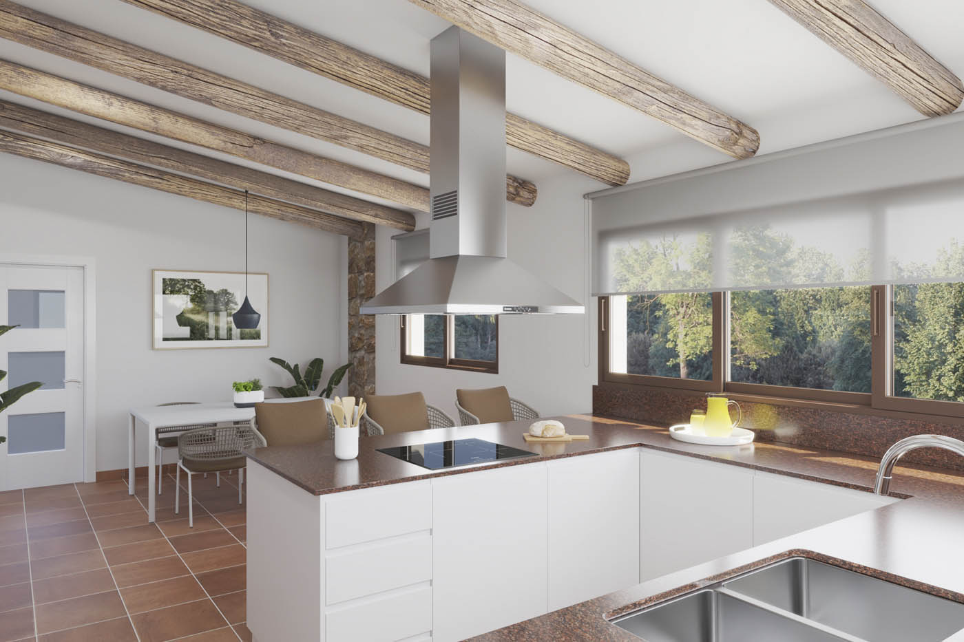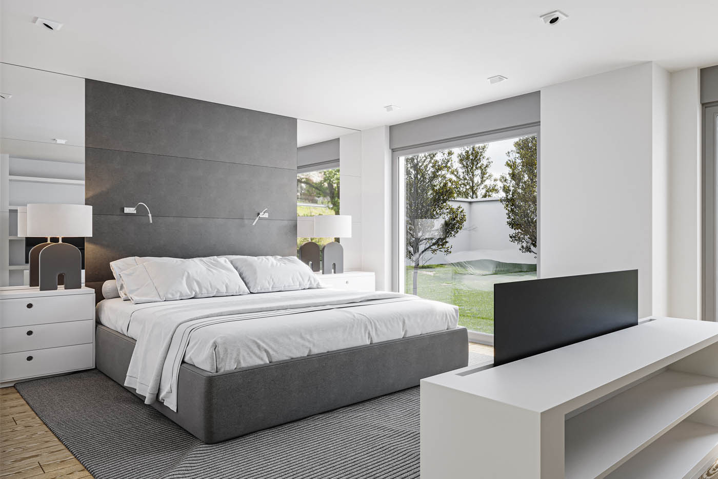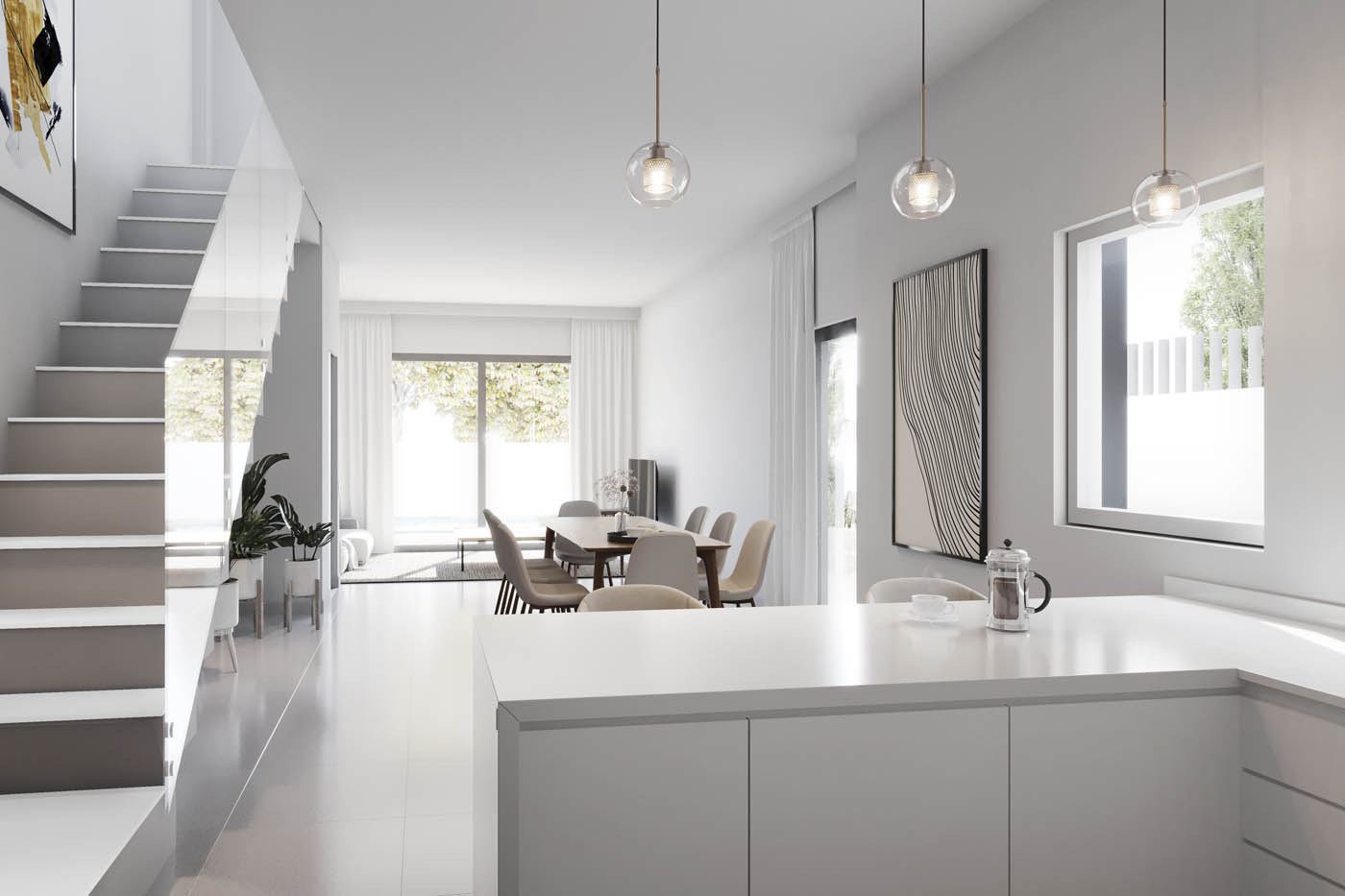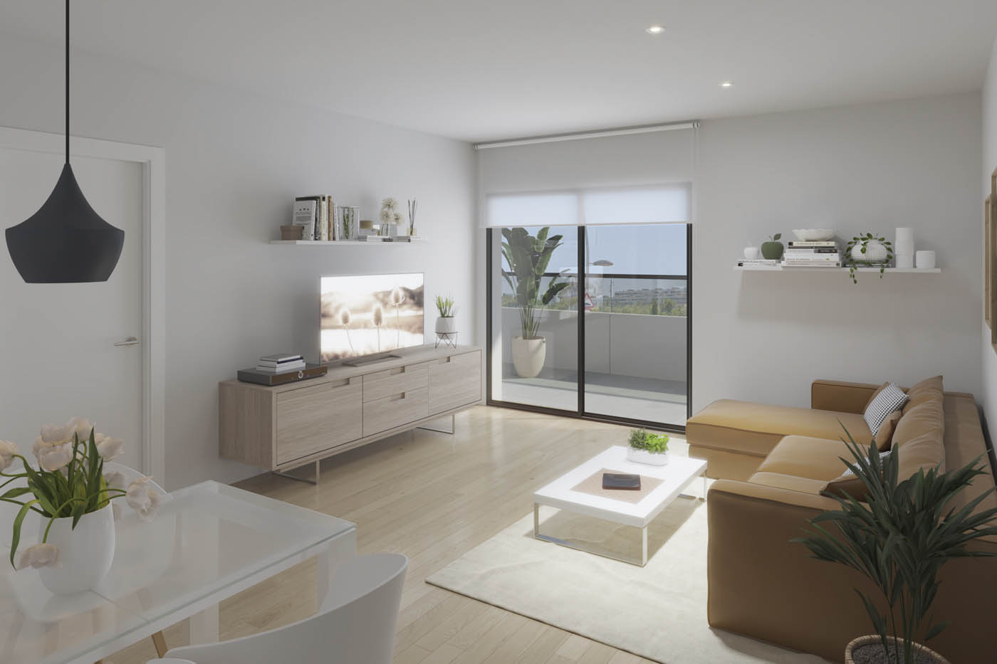 Infografías 3D del salón, cocina y dormitorio de una vivienda tipo dúplex en Alicante, realizadas con renders 3D para la comercialización de una promoción inmobiliaria. Estos espacios son los más representados habitualmente para la comercialización de promociones inmobiliarias ya que permiten visualizar las habitaciones más importantes de una vivienda y sirven para comprender con gran detalle las características del inmueble a comercializar. Infografías de interiores 3D con gran calidad y realismo con la mejor relación calidad y precio del mercado. Nuestra metodología de trabajo, contrastada durante más de 20 años de experiencia, nos permite trabajar desde la distancia, sea donde sea, para empresas de toda España con todas las garantías.