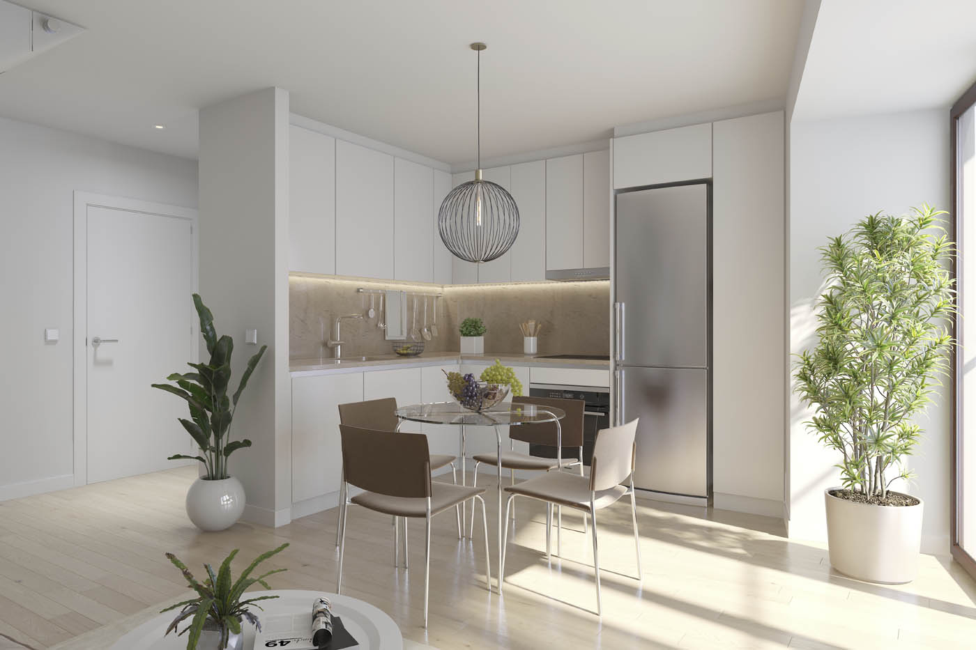 Renders 3D de los interiores de una vivienda en Castro Urdiales, Cantabria, para visualizar el salón comedor, cocina y dormitorio a través de recreaciones virtuales con gran calidad, detalle y realismo, para la comercialización de una promoción inmobiliaria. Somos profesionales con más de veinte años de experiencia en el sector realizando proyectos para empresas de toda España, trabajamos en todas las zonas del territorio nacional ya que nuestra metodología de trabajo nos permite colaborar con clientes y empresas de toda España con todas las garantías. Hemos desarrollado miles de imágenes en todos estos años. Si está pensando en la comercialización de una promoción inmobiliaria o la visualización 3D de un proyecto de interiorismo... ¡Llame ahora, hable con nosotros!
