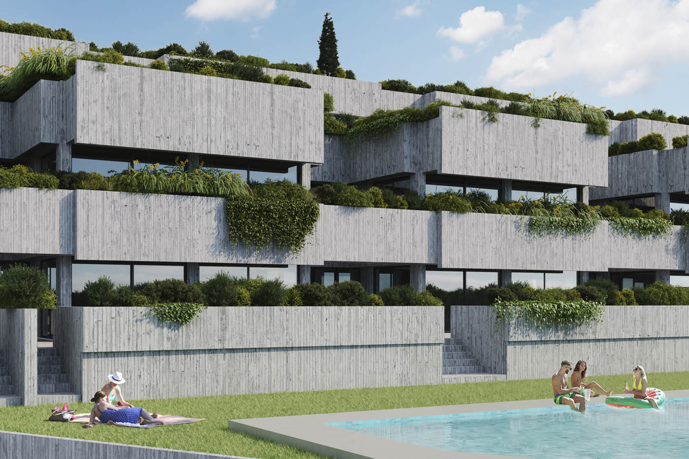 Renders 3D conceptuales del anteproyecto de una urbanización residencial en Olivar de la Hinojosa, Madrid, que forman parte del marketing inicial para la comercialización de esta promoción inmobiliaria, una urbanización con piscina y zonas comunes. Se han realizado vistas iniciales para entender la tipología arquitectónica y propuesta estética refelejada en el anteproyecto. Con más de 20 años de experiencia hemos ido aumentando nuestra oferta de servicios para ofrecer todo tipo de herramientas de marketing inmobiliario para afrontar la venta de un inmueble con todas las garantías. Si está interesado en la comercialización de una promoción inmobiliaria en cualquier punto de España, hable con nosotros, le asesoraremos para conseguir la mejor imagen para su proyecto.