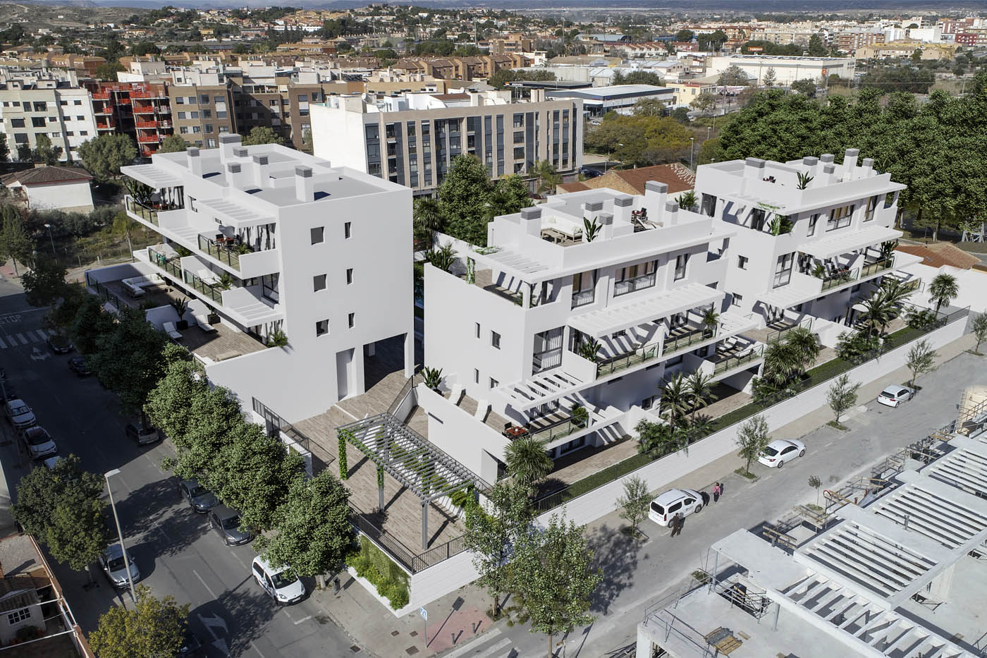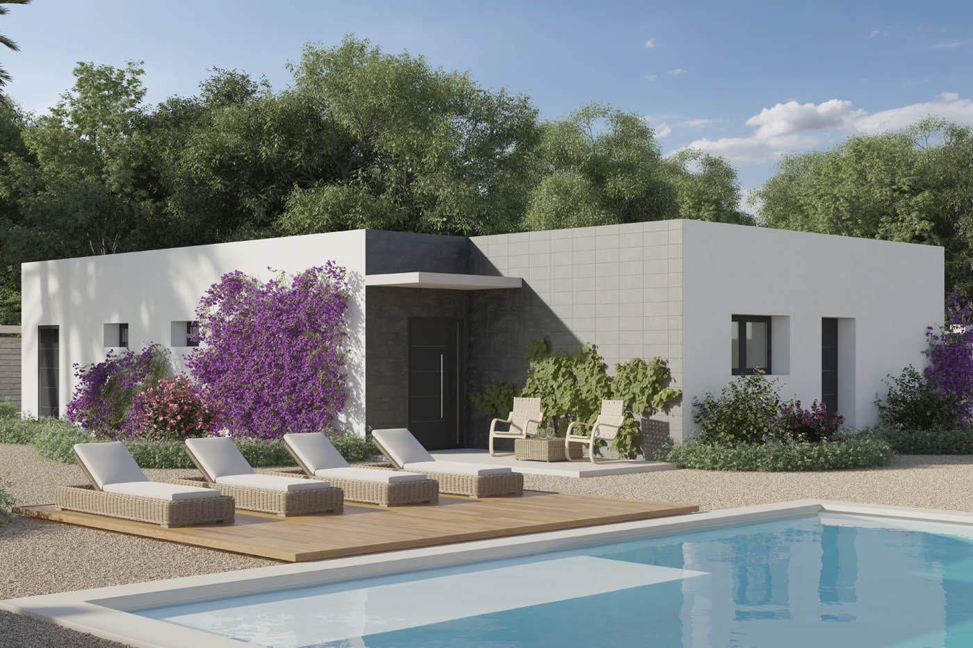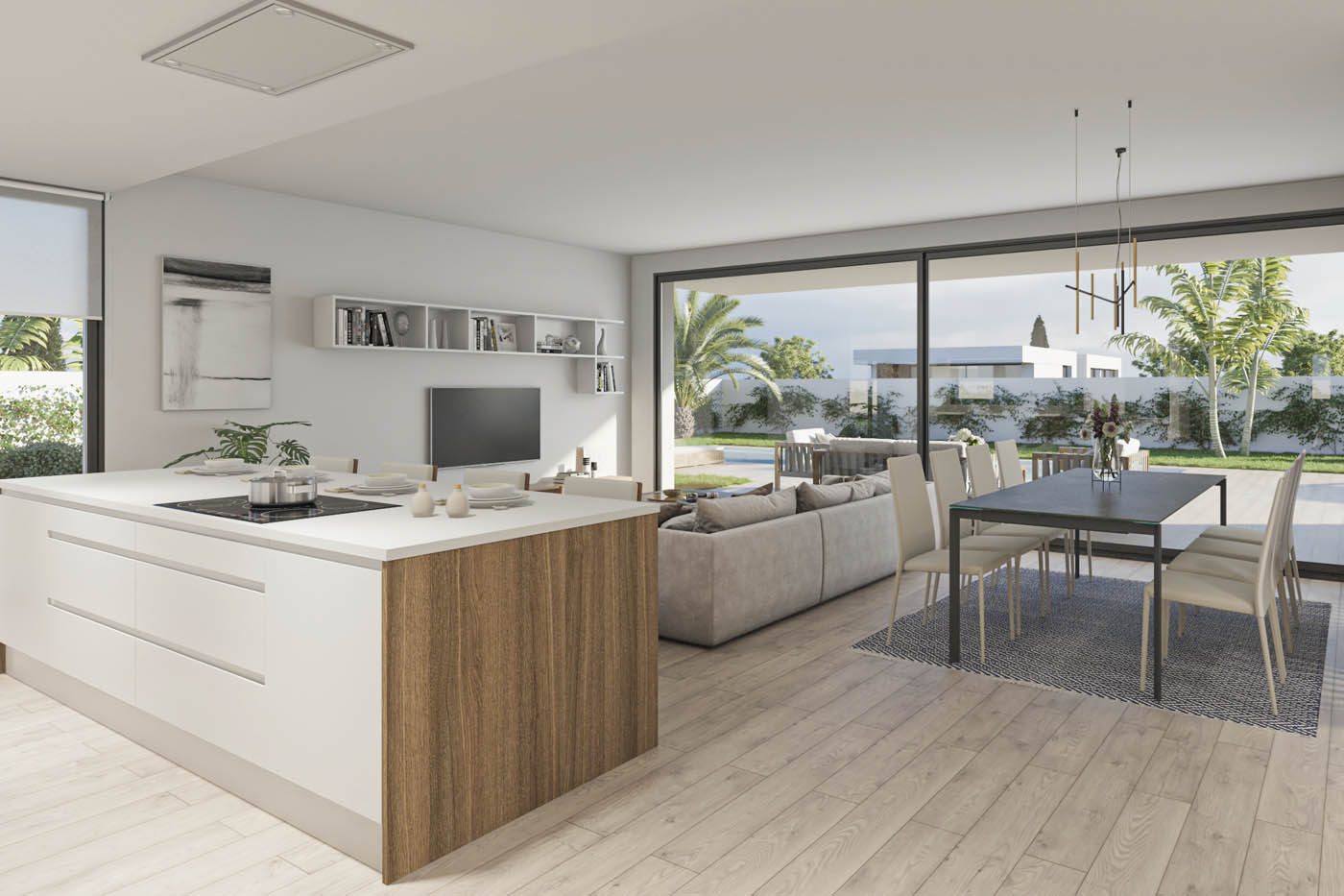 Renders 3D de los interiores de una vivienda unifamiliar con parcela independiente en Mutxamel, Alicante, desarrollados para la comercialización de una promoción inmobiliaria con infografía 3D. Tenemos más de 20 años de experiencia realizando recreaciones virtuales de espacios interiores con gran calidad, detalle y realismo para el sector inmobiliario. Renders 3D de interiores con la mejor relación calidad y precio del mercado, ahora puede representar un piso piloto virtual de su promoción inmobiliaria mucho antes de ejecutar la obra lo que permite ilustrar la publicidad de su proyecto con un alto grado de calidad y realismo. Una herramienta de gran valor comercial para agentes inmobiliairios ya que permite visualizar con todo lujo de detalles los espacios de las viviendas que se construirán. Ahora puede mostrar a sus clientes imágenes con calidad fotográfica de la futura vivienda.