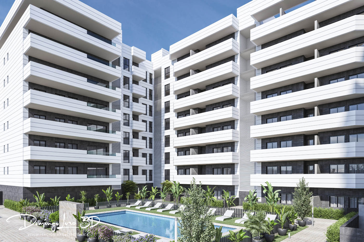 Render 3D de un edificio residencial en Elche a vista de dron integrado sobre una fotografía aérea. Realizamos renders de arquitectura 3D para la representación y comercialización de todo tipo de promociones inmobiliarias con vistas aéreas realizadas con drones, somos profesionales con veinte años de experiencia en el desarrollo de renders de arquitectura 3D para empresas de toda España, la integración 3D de este edificio residencial en Elche, junto a El Corte Inglés, que ilustra este artículo es un buen ejemplo de ello. Hacemos renders 3D de promociones inmobiliarias integrados en fotografías realizadas con drones con la mejor relación calidad, precio y plazo de entrega del mercado para inmobiliarias, arquitectos y empresas promotoras de toda España. Somos pilotos de drones y empresa operadora acreditada por AESA. ¡Contacte con nosotros!