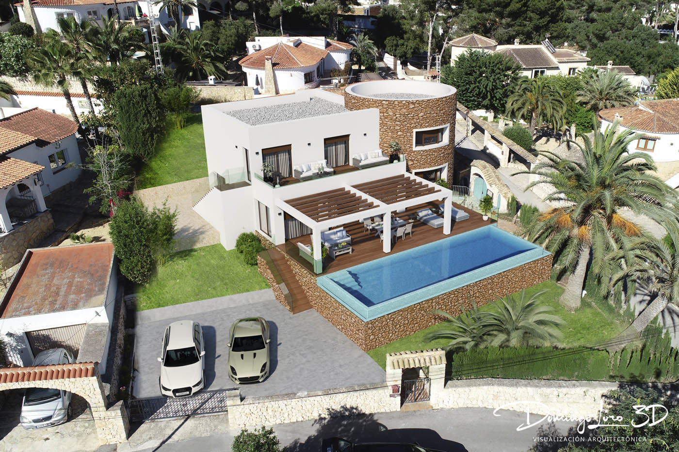 Renders de arquitectura 3D de una vivienda unifamiliar con parcela independiente en Jávea, Alicante, junto con renders de interiores forman parte del marketing inmobiliario de este proyecto, una vivienda que está siendo reformada de manera integral y se han realizado recreaciones virtuales de exterior e interior de la vivienda para la comercialización de esta promoción inmobiliaria. Con 20 años de experiencia hemos ido aumentando nuestra oferta de servicios para ofrecer todo tipo de herramientas de marketing inmobiliario para afrontar la venta de un inmueble con todas las garantías. Si usted está interesado en la comercialización de una promoción inmobiliaria en cualquier punto de España, hable con nosotros.