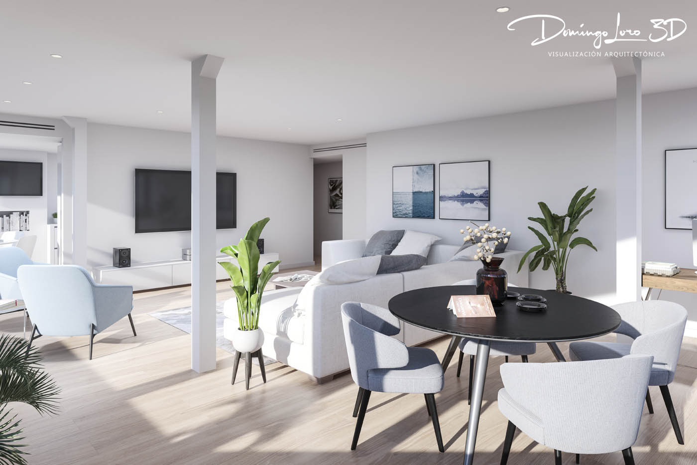 Renders 3D de los interiores de un apartamento en Benidorm que va ser rehabilitado de forma integral realizados con infografía 3D para observar el resultado de la reforma antes de la ejecución de la obra. Los renders 3D para visualizar espacios interiores tienen mucho protagonismo en portales inmobiliarios ya que permiten al cliente visualizar por completo el espacio interior de una vivienda. Sumando varios renders 3D se puede conseguir un piso piloto virtual del inmueble con vistas de todas las dependencias. Somos profesionales en la creación de renders 3D de espacios interiores realizados con infografía 3D. Con 20 años de experiencia podemos conseguir la mejor imagen para su proyecto.