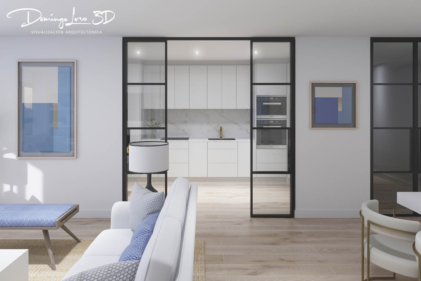 Renders 3D de un proyecto de interiorismo en una vivienda en Valencia realizados con infografía 3D, hacemos recreaciones virtuales de gran realismo para la representación de todo tipo de espacios interiores capaces de mostrar cualquier tipo de mobiliario, elementos decorativos, iluminación y puntos de vista convirtiéndose en una herramienta muy eficaz para comunicar proyectos de interiorismo con un alto impacto visual muy útil para la comprensión del proyecto por parte de todos los actores involucrados: clientes, proveedores y técnicos que participan en un proyecto de interiorismo ahora pueden comprender y comunicar a través de renders 3D fotorrealistas cualquier proyecto de interiorismo de manera profesional. Trabajamos para interioristas de toda España.